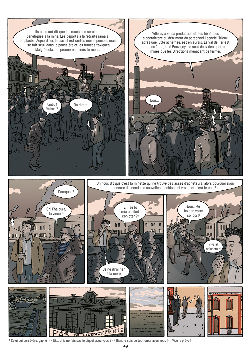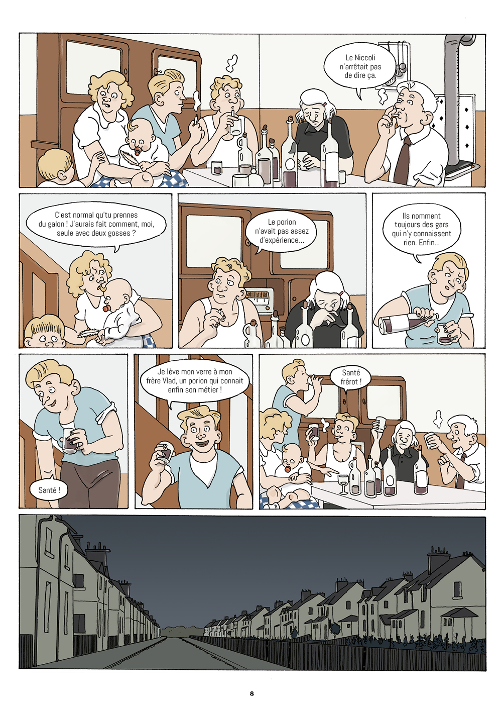 Un album drôle et sensible. Avec Culottes et wagonnets, Tomek Heydinger s’inspire d’histoires à la fois familiales et régionales, mais qui dépeignent de manière plus large, une mémoire française. Une époque révolue mais encore très présente dans les régions rurales du Nord. L’enjeu est de parler des gens ordinaires, dans un milieu peu décrit en bandes dessinées, raconter ces familles d’ouvriers de père en fils, puis les fermetures des usines, voir poindre les changements, comme l’émancipation des jeunes femmes (qui désirent autre chose que se marier, faire la popote tout en s’occupant de toute une marmaille). Donner à lire ce récit est aussi se plonger dans une époque et une région riche mais assez méconnue pour tous ceux qui, géographiquement, en sont éloigné.