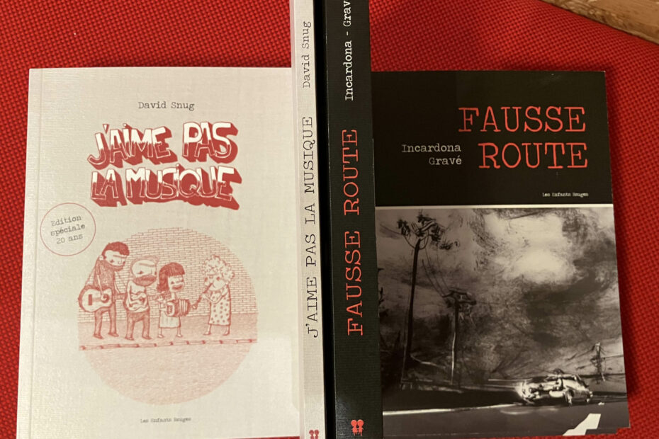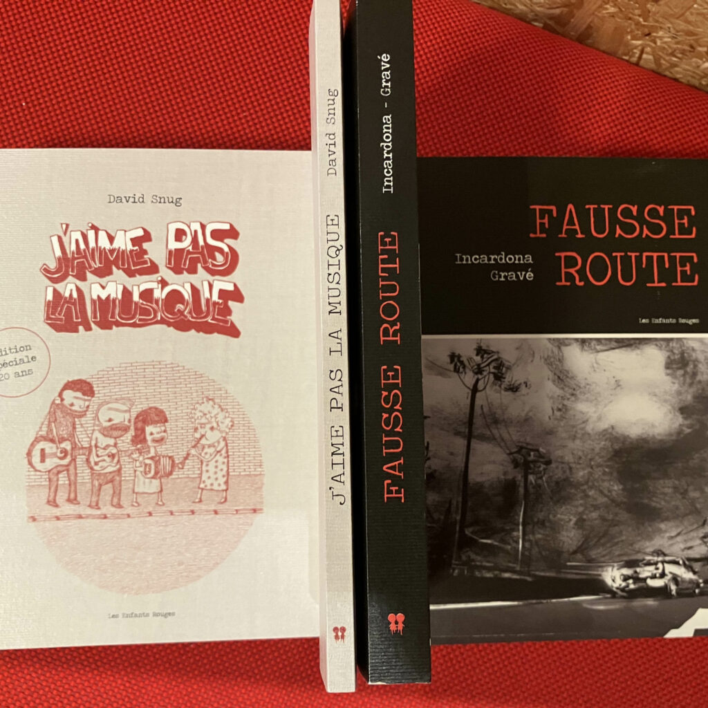 Une nouvelle collection est née en ce printemps 2026 pour célébrer les 20 ans des Enfants Rouges ! Elle met à l’honneur, des titres et des auteur-rices ayant marqué-e-s l’histoire du catalogue, au format Poche 14 x 19. Dès le 20 mars, (Re)-découvrez le roman noir graphique de Joseph Incardona et Vincent Gravé « Fausse route » et a BD autobio-satirique de David Snug « J’aime pas la musique »
